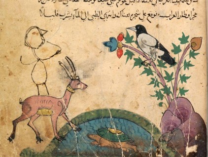 "Animali", miniatura (con scarabocchio di figura umana) tratta dall'opera 'Kalīla wa Dimna' (1310 circa), Bayerische Staatsbibliothek, Monaco.