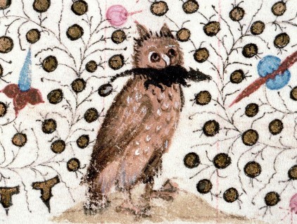 "Gufo", miniatura tratta da 'Libro d'Ore del conte di Ormond' (1460 circa), British Library, Londra.