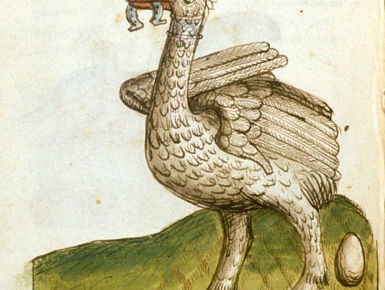 "Struzzo", miniatura tratta da 'Resoconto di viaggio da Venezia alla Palestina' (1467 circa), British Library, Londra. Lo struzzo nel Medioevo era considerato un animale particolare per i suoi strani comportamenti che diedero origine a credenze,…