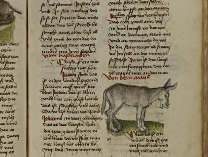 Miniatura tratta dal manoscritto "Buch der Natur", ms. 2.264, 84r, XV secolo Bibliothèque nationale et universitaire de Strasbourg. Illumination from the manuscript "Buch der Natur", ms. 2.264, c. 84r, 15th century, Bibliothèque nationale et universitaire…