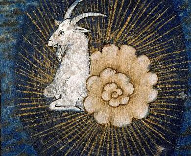 Miniatura tratta dal Libro d’Ore conservato a Lione, Ms. 5140, c. 13v (Capricorno), 1430 circa, Bibliothèque municipale, Lione, Francia.