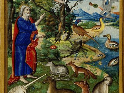 Genesis, The Creation of Animals, including the unicorn XVI secolo, Bodleian Library, Oxford. MS. Douce 135 fol-017