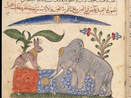 Kalila e Dimna, ms. persiano, XIV sec. (Bibliothèque nationale de France, Ms. Pers. 376, c. 158v, part. della miniatura)