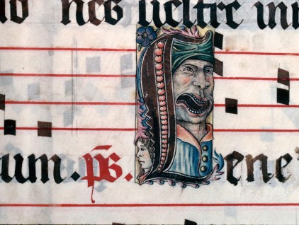 Iniziale raffigurante un uomo che canta, illustrazione tratta dal 'Graduale di Saint-Dié' (1504-1514), Bibliothèque municipale, Saint-Dié-des-Vosges.