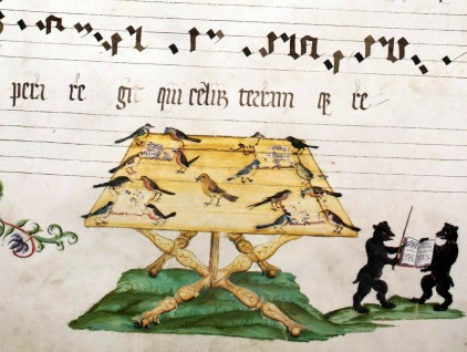 Miniatura tratta da 'Canti a quattro voci per le principali festività dell'anno liturgico' (1562), Biblioteca dell'Abbazia di San Gallo, Svizzera.