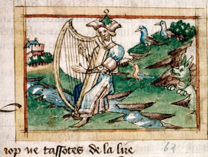 "Orfeo suona la lira circondato da animali", illustrazione tratta dal ‘L’Epitre d’Othea di Christine de Pizan’ (1460 circa), Bibliothèque municipale, Lille.