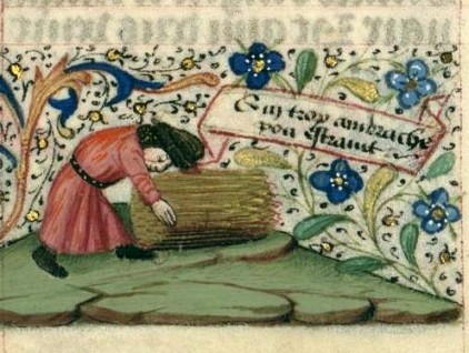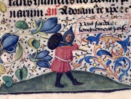 "Petit fardeau longuement porte poise" Miniatura tratta dal 'Libro d'Ore con proverbi' - codice NAL 3134 (metà XV secolo), Bibliothèque nationale de France, Parigi.