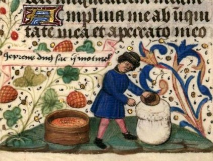 "Je prends d'un sac deux moutures" Miniatura tratta dal 'Libro d'Ore con proverbi' - codice NAL 3134 (metà XV secolo), Bibliothèque nationale de France, Parigi. #proverbi #proverb #medioevo