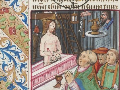 Miniatura tratta dal manoscritto “Missale et horae ad usum Fratrum Minorum”, ms. Latin 757, c. 363v, XIV secolo, Biblioteca Nazionale di Francia, Parigi. Illumination from the manuscript “Missale et horae ad usum Fratrum Minorum”, ms.…