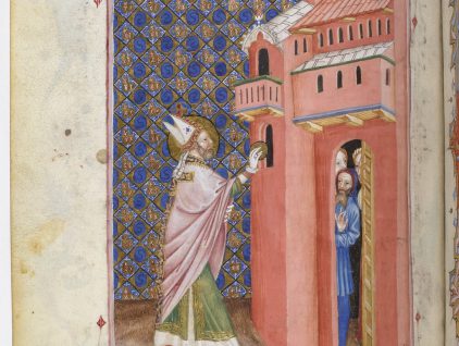 Miniatura tratta dal manoscritto “Leggenda aurea”, Jacques de Varagine, ms. Français 245, c. 169r, XV secolo, Biblioteca Nazionale di Francia, Parigi. Illumination from the manuscript “Golden Legend”, Jacques de Varagine, ms. Français 245, c. 169r,…