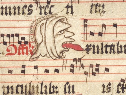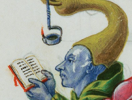 Iniziale "E" (Exultabunt), miniatura tratta dal Graduale Ms. 693 (inizio XV secolo), Bodleian Library, Oxford.