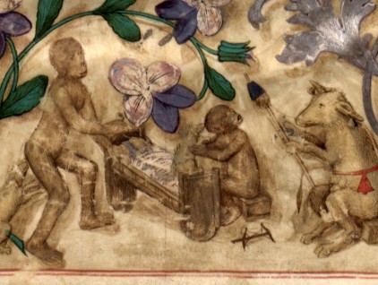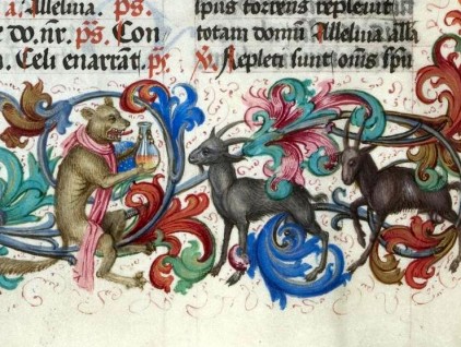 "L'imbonitore attira le capre", miniatura tratta da Breviario abbaziale (Salem, 1494-1495), Biblioteca dell'Università di Heidelberg.