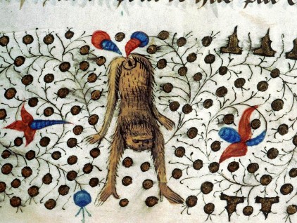 "Il cavaliere incontra un animale multicolore", miniatura tratta dal 'Perceforest' (Bruges, 1500 circa), British Library, Londra.