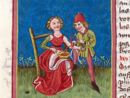 "Salasso", illustrazione tratta dal 'Codex Schürstab' (1472), Zentralbibliothek, Zurigo. Curiosità: nel medioevo la pratica dei salassi era affidata prevalentemente ai barbieri-cerusici, gli stessi che si occupavano di ricomporre le fratture e incidere gli ascessi.