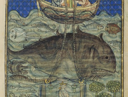 "Il sommergibile di Alessandro Magno", miniatura tratta dal codice 'Histoire du bon roi Alexandre' (1320), Kupferstichkabinett Staatliches Museum Preußischer Kulturbesitz, Berlino. Secondo la leggenda, Alessandro Magno fece costruire il primo "sottomarino" della storia per esplorare…