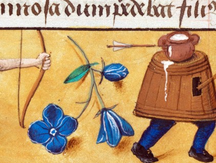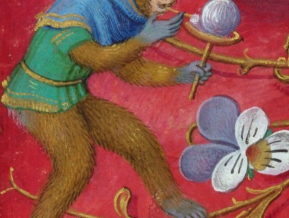 Particolare del bordo inferiore, miniatura tratta dal Libro d'Ore A28 (1500 circa), Bibliothèque publique et universitaire, Neuchâtel.
