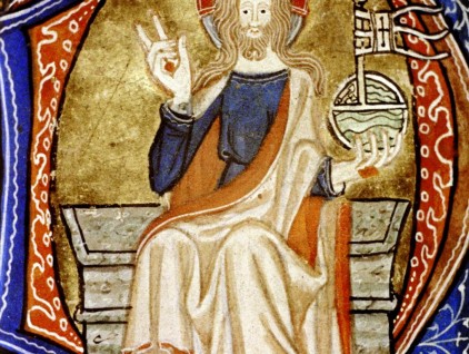 "Cristo benedicente", miniatura tratta da Libro d'Ore (metà XIV secolo), Bodleian Library, Oxford.