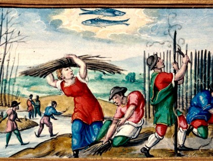 "Mese di febbraio", miniatura tratta da Libro d'Ore (1540), Bibliothèque municipale, Besançon.
