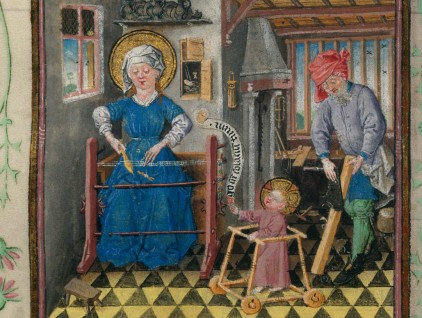"L'infanzia di Gesù", miniatura tratta dal 'Libro d'Ore di Catherine de Clève' (1440 circa), Morgan Library & Museum, New York.