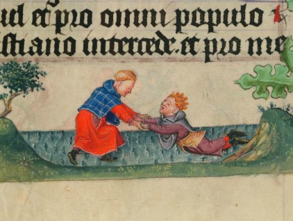 "Lezioni di nuoto", miniatura tratta dal ‘Libro d’Ore di Catherine de Clève’ (1440 circa), Morgan Library & Museum, New York.