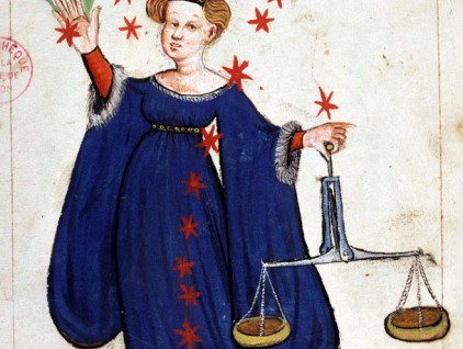 “La costellazione della Vergine”, illustrazione tratta da ‘Recueil d’astronomie et de mathématiques’ (secondo quarto del XV secolo), Bibliothèque Municipale, Lione.
