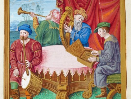 "Suonatori", miniatura tratta dal 'Salterio di Enrico VIII' (1540-1541), British Library, Londra.