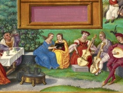 "Musica e Amore nell'Hortus Deliciarium di Venere", miniatura tratta dal codice 'De Sphaera' (1460 circa), Biblioteca Estense Universitaria, Modena.