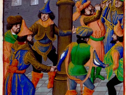 "Uomini danzano intorno a un idolo" Miniatura tratta da La cité de Dieu Codice Royal 17 F III (1479-c. 1480) British Library, Londra