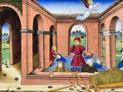 A Gerusalemme, presso la piscina probatica di Betsaida circondata da portici, gli infermi attendono in gran numero l’arrivo dell’angelo che ne agiti le acque, perché chi vi si getterà dentro ne uscirà guarito... . All'arrivo dell'angelo…