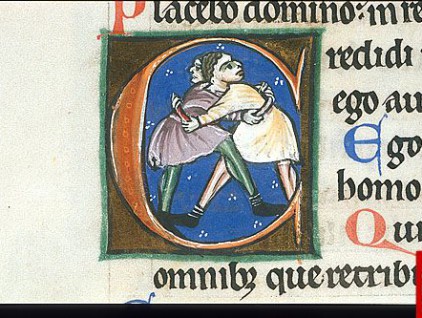 - Una decorazione composta da due uomini che fanno WRESTLING (Oxford, 1° quart. del 13° secolo), Londra, British Library, MS Arundel 157, f. 95v. - A decorated initial with two WRESTLING men (Oxford, 1st quarter…