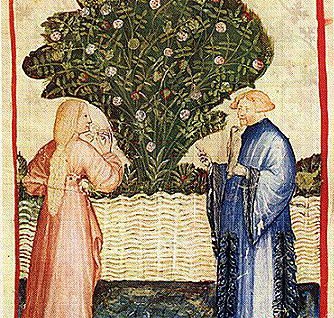 Walking in the spring garden. The Tacuinum of Paris - late 14th century