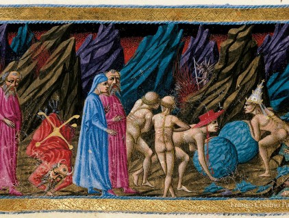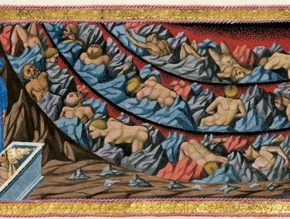 Inferno, Canto VII. Le parole di Virgilio fanno cadere a terra il guardiano del quarto cerchio, Pluto, mitologico dio della ricchezza. Superato il demone, i due poeti possono osservare le anime dannate degli avari e…