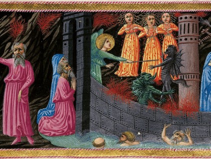 Inferno, Canto IX. Giunti alle porte della città di Dite, i due poeti scorgono tre furie dalle sembianze femminili che invocano l'arrivo di Medusa, affinché pietrifichi Dante con lo sguardo. Virgilio invita Dante a tenere…