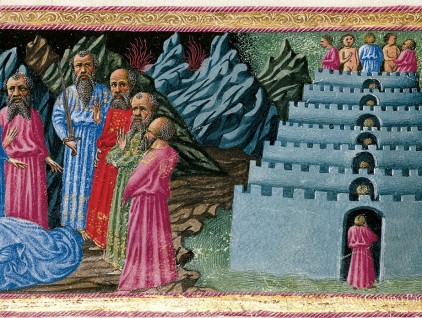 Inferno, Canto IV. Un "greve tuono" risveglia il poeta che, rialzatosi, entra con Virgilio nel Limbo. Qui incontro Omero, Orazio, Ovidio e Lucano (unico caso dell'Inferno in cui il miniatore non ritrae le anime nude).…