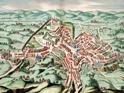 "Personificazione dell'Italia", illustrazione tratta da 'Voyages et aventures de Ch. Magius' (1578), Bibliothèque nationale de France, Parigi. In senso orario da sinistra: 1. Pesaro 2. Sacile 3. Pola 4. Capodistria 5. Venezia 6. Ferrara 7. Bologna…