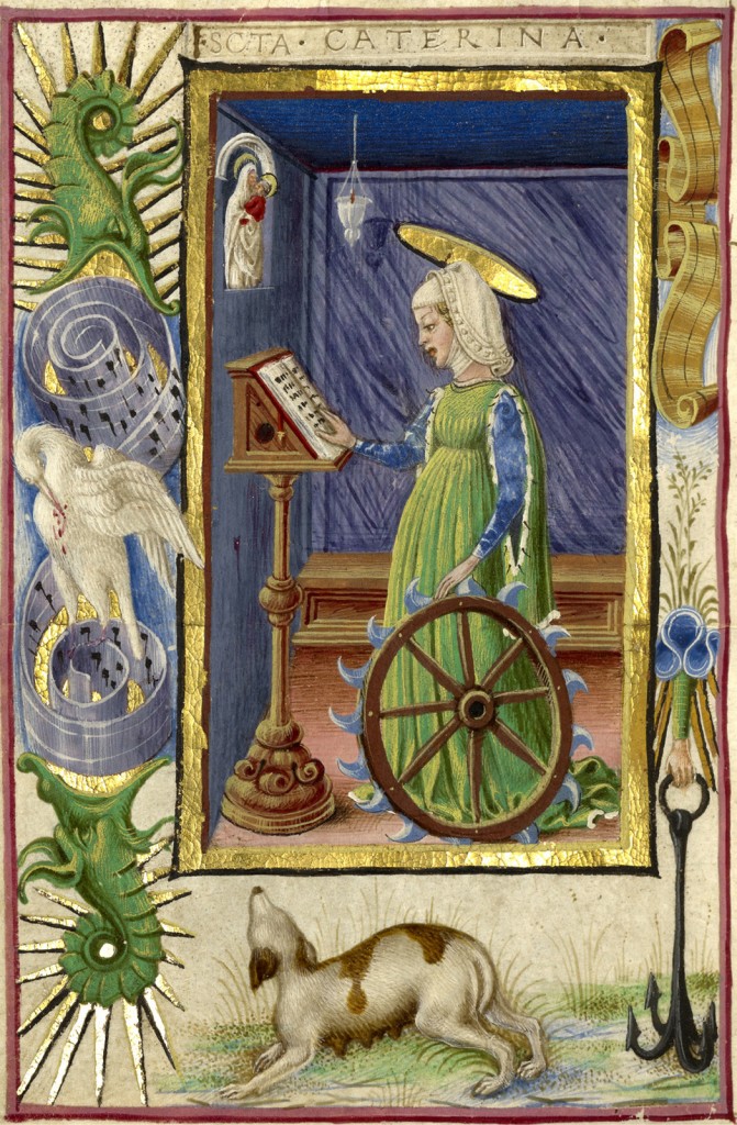 Taddeo Crivelli, "Santa Caterina", miniatura tratta dal 'Libro d'Ore Gualenghi-d'Este' (Ferrara, 1469 circa), Getty Museum, Los Angeles.
