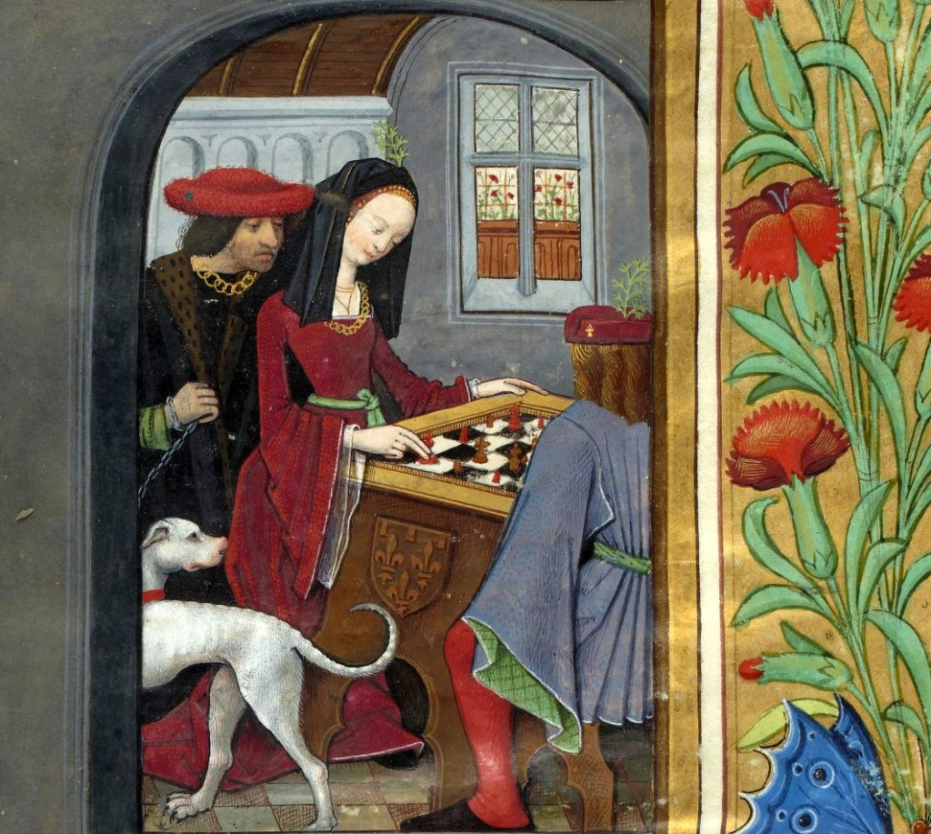 "Partita a scacchi", miniatura tratta dal 'Livre des échecs amoureux moralisés' (fine XV secolo), Bibliothèque nationale de France, Parigi.