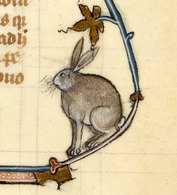 Conigli e lepri popolano spesso i margini dei manoscritti miniati: diffusissima è l'immagine dell'animale inseguito dal cane da caccia.