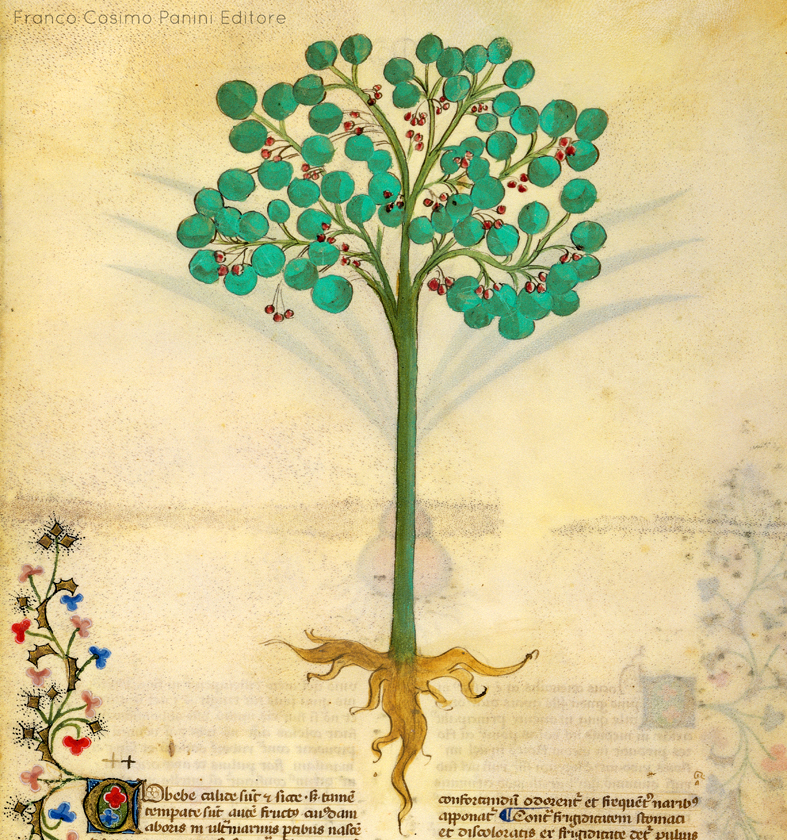 "Cubebe è il nome dei frutti di un certo albero che nasce nelle zone d'oltremare. Ridotti in polvere e posti in quantità elevata nel vino con miele e altre spezie, giovano contro il pallore e ripristinano il colorito".