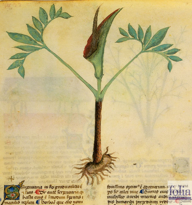 "La radice della serpentaria, una volta essiccata, di riduce in polvere e si confeziona con l’acqua di rose, si espone di nuovo al sole e poi si usa per ungere la faccia: la rende chiara e luminosa."
