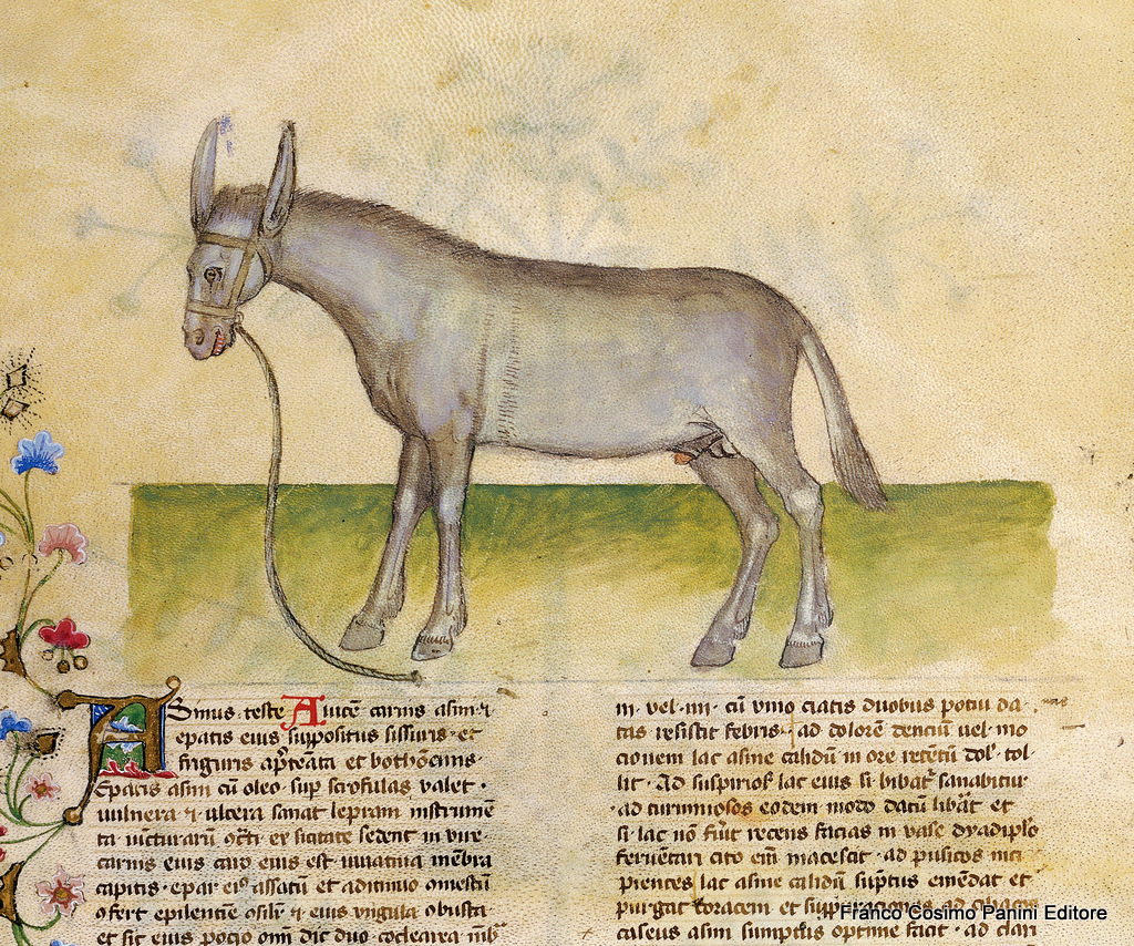 "L'urina dell'asino ha molte virtù: contrasta il dolore alla vescica e spezza i calcoli; è utile a chi soffre di pesantezza di testa; impiegata per ungere le reti dei pescatori, permette di catturare grande quantità di pesce."