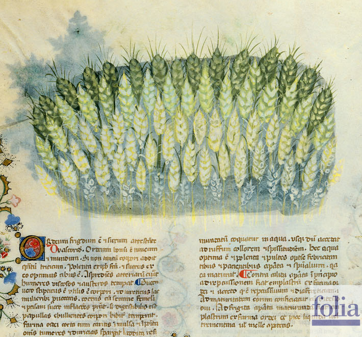 “L’orzo buono è candido e mondo, ma non giova tanto al corpo quanto il frumento. La sua farina, unita a pece liquida, cera, urina di fanciullo e olio, porta a guarigione le scrofule.”