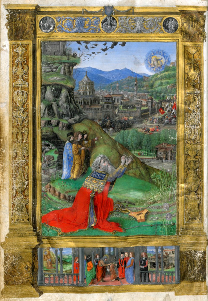Tra i prestiti di maggior rilievo spiccano la tappezzeria del trono di Mattia Corvino del Museo Nazionale di Budapest, realizzata su disegno di Antonio del Pollaiolo, il rilievo marmoreo con il Ritratto di Alessandro Magno della National Gallery di Washington, attribuito ad Andrea del Verrocchio, la straordinaria Bibbia di Mattia Corvino (nella foto) della Biblioteca Medicea Laurenziana miniata da Monte e Gherardo di Giovanni, i Ritratti di Mattia Corvino e Beatrice d'Aragona del Museo di Belle Arti di Budapest, attribuiti a Giovanni Dalmata, l'Epithalamium di Marliano della Biblioteca Guarnacci di Volterra, con il ritratto di Mattia di miniatore appartenente alla cerchia leonardesca.
