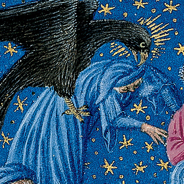 Nella valletta dei principi è ormai scesa la notte e Dante, “vinto dal sonno”, si addormenta. La postura di Dante dormiente è canonica: seduto, con gli occhi abbassati, la testa reclinata e sostenuta dal braccio che poggia sul ginocchio. Si tratta di un atteggiamento che tra Medioevo e Rinascimento implica spesso la perdita di coscienza e insieme la meditazione profonda, così da essere impiegata per esprimere anche la concentrazione che caratterizza i profeti e i santi assorti in una visione.Ora, al poeta addormentato compare in sogno un’aquila, le cui “penne d’oro” sono rese nell'illustrazione con una tinta nera corvina. Essa discende come una folgore e rapisce il poeta e, a differenza di quanto narrato nel testo, trasporta il poeta con gli artigli e con il becco consentendogli di risvegliarsi di fronte alla porta del Purgatorio.