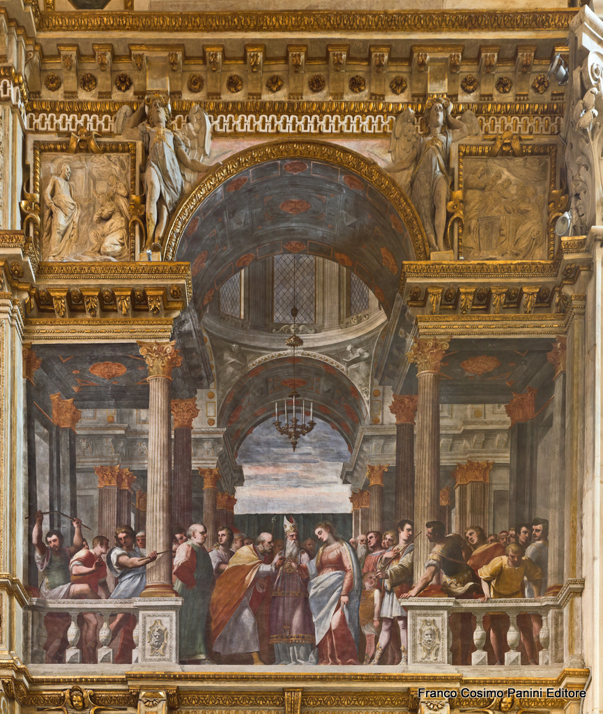 Genova, Duomo, interno, Cappella Lercari (abside settentrionale), fianco meridionale: Sposalizio della Vergine. Affresco di Luca Cambiaso, 1567-1569.