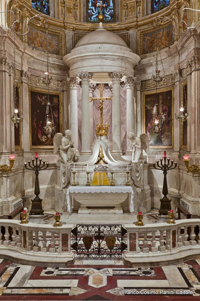 Genova, Duomo, interno, Cappella Lercari (abside settentrionale): Altare del Santissimo Sacramento, di C. Barabino (1817 – 1818).