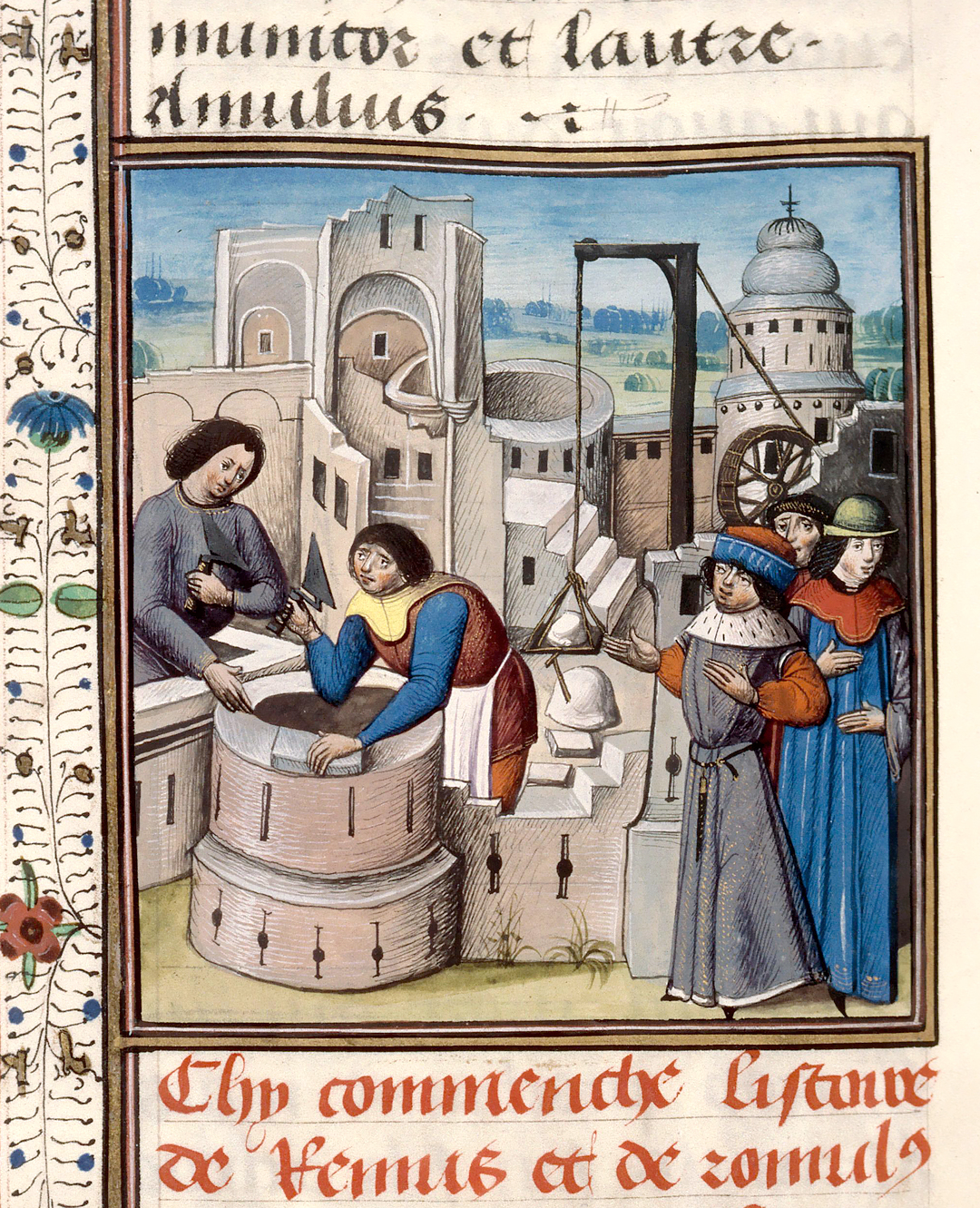 "Building of Rome", illumination from the manuscript "Histoire ancienne jusqu'à César", ms. 1139 (U. 005), f. 258v, ca. 1470-1480, Bibliothèque Municipale, Rouen.
