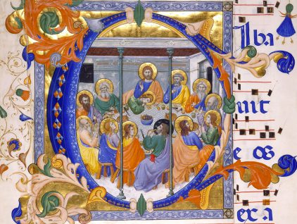 "Last Supper", historiated initial "C", cutting from a Florentine Gradual, ms. M.653, no. 4 (II.25), between 1392 and 1399, Pierpont Morgan Library, Department of Medieval and Renaissance Manuscripts, New York. The illumination we present on…