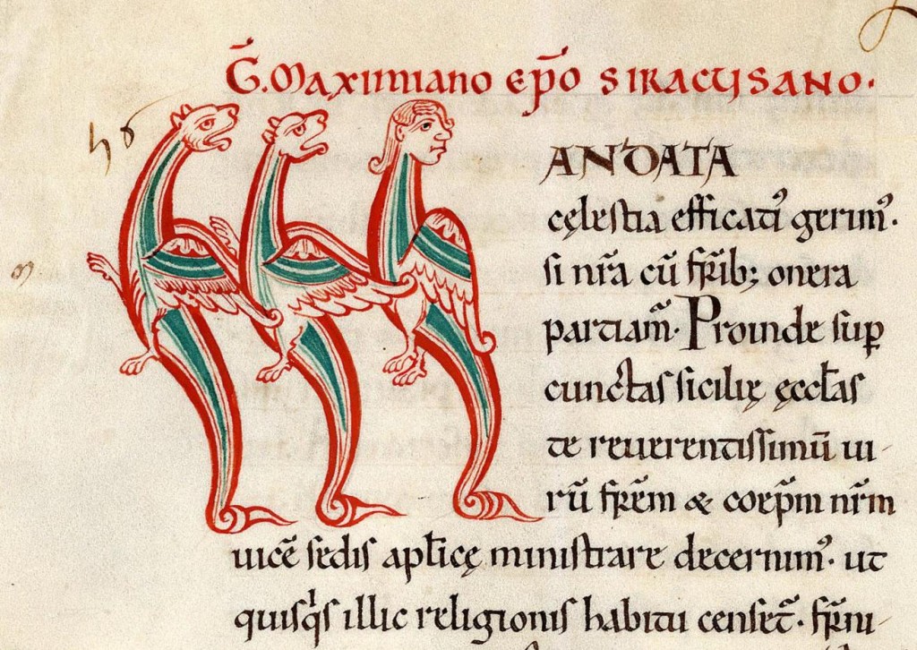 Iniziale "M" (Mandata celestia efficacius) tratta dal codice 'Aurora' (XII-XIII secolo), Bibliothèque Municipale, Douai.