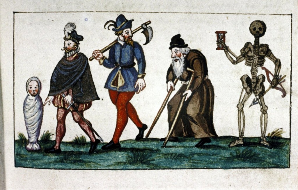 "Le cinque età dell'uomo", illustrazione tratta da Trattato alchemico (inizi del XVII secolo), Bodleian Library, Oxford.